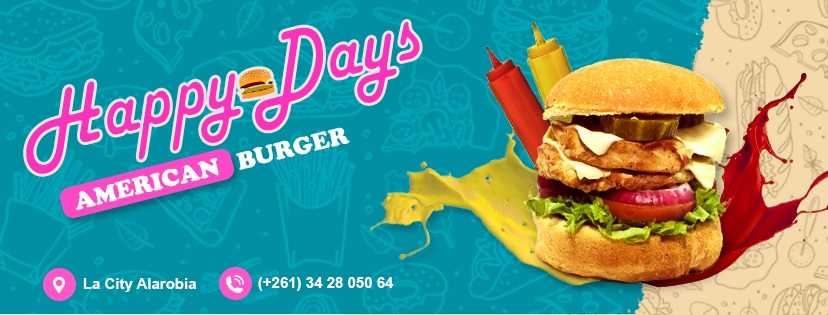 Happy Days, un restaurant très spécialisé du take away. Fort reconnu pour nos burgers en différents versions, nous avons aussi des spécialités poulet (wings et ailes), des nuggets, …