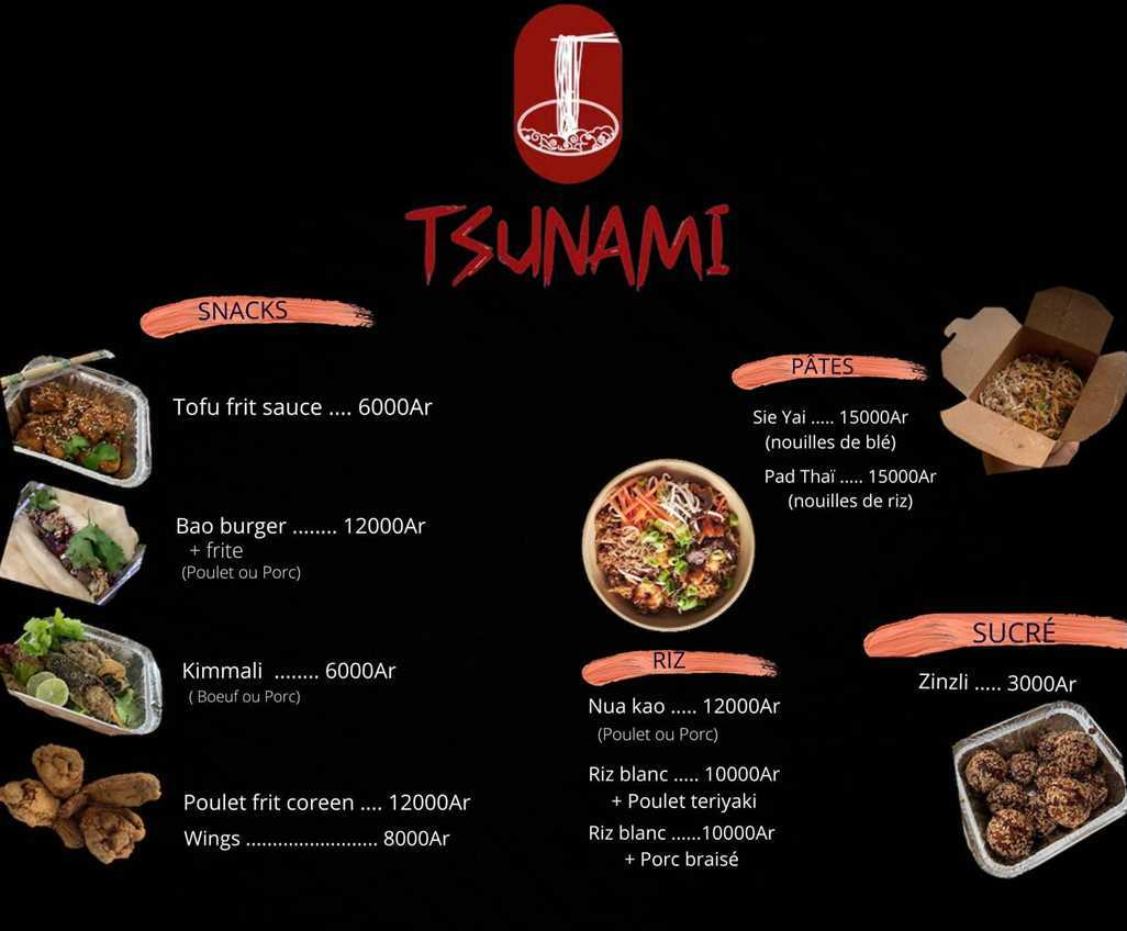 Tsunami propose une cuisine de rue asiatique; vous pouvez également y goûter des boissons rafraîchissantes gourmandes.